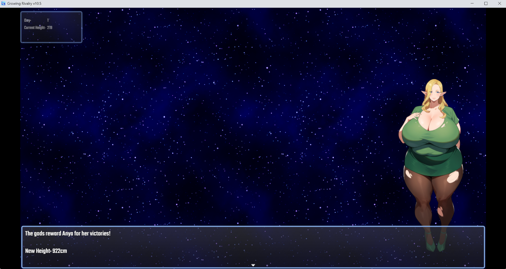 its kinda weird that at day 2 "morning" a girl is already over 1000cm with 16 victories (easy mode), the other girls are also mostly much taller ~ 500cm.